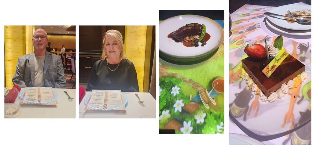 Celebrating our 40th wedding anniversary on the ship in a very special restaurant - La Petit Chef. Wonderful experience!