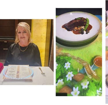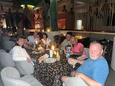 During our stay in Cancun, we celebrated three birthdays: Gabe Long's, Shelley Pullam's, and mine. For this special evening, we dined together at the MB restaurant. What a treat it was! The habanero soup was absolutely delicious. MB is a highly coveted spot, but I had made prior arrangements with the dining room manager to secure a table large enough for our group.