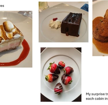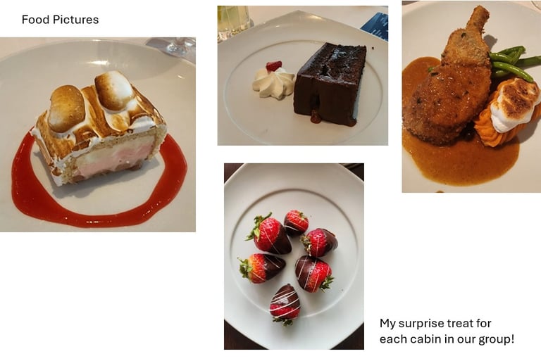 Once checked in and settled, we ventured out to explore the resort. There were so many restaurants to discover, each offering its own unique delights. After dinner, we'd reunite to see what activities were available for the evening. One particularly memorable night, Gary and I joined in the Casino fun. It was a blast—I won over $3,400 in play money and had the chance to bid on items later.