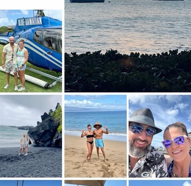 Riding in a limo-van to the Road to Hana with a stunning helicopter ride over the islands. AND to add a little more adventure they flew through the treetops on a zipline course amount the tropical landscape.