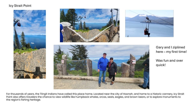 We began in Vancouver, stops in Icy Strait Point, cruising through Hubbard Glacier, Juneau and Ketchikan.
